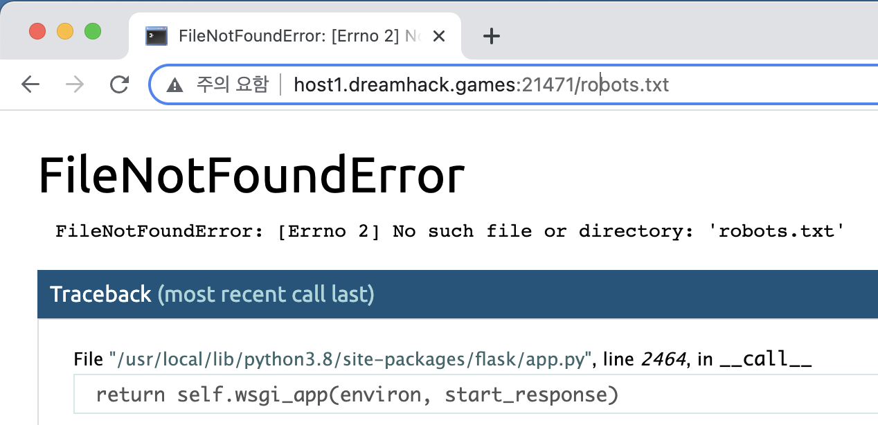 아무런 정보가 없어서 혹시나 하는 맘에 robots.txt를 요청하니, flask가 debugger 모드로 실행되고 있었다.