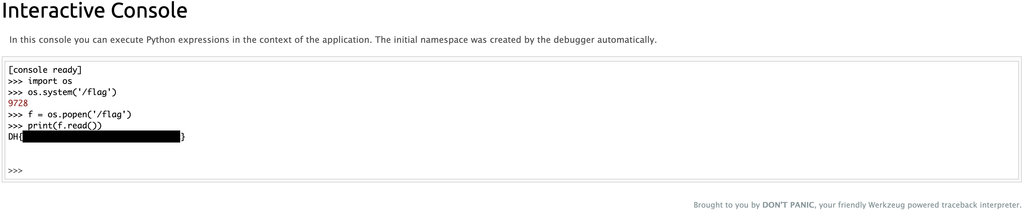 내가 flask를 공부했을 때 flask의 debugger 모드에서 취약점이 있으니, 배포할 때 꼭 debugger 모드로 되어있는지 체크하라고 했던 것으로 기억난다.