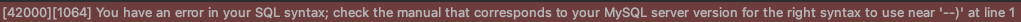 위 SQL를 실행해보니, --)에서 에러가 발생된 것을 발견할 수 있었다.