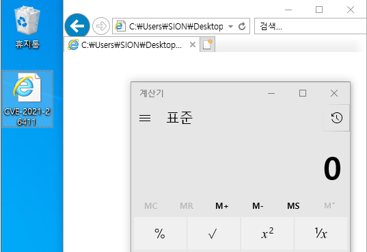 취약한 OS 환경에서 IE11 브라우저를 이용해 cve-2021-26411.html 파일을 로드할 때 취약점이 동작한다.