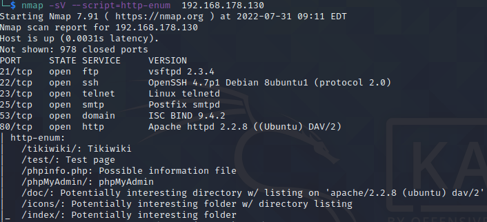 이외에도 ftp 익명 계정을 확인하는 ftp-anon.nse, 패스워드 설정되지 않은 데이터베이스 검색 mysql-empty-password.nse등 많은 nse들이 알려져 있으니 필요한 부분에 대해서는 확인 후 업무에 적용할 수 있는 방안에 대해 알아보아야 할꺼 같다.