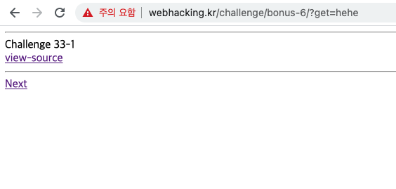 Get 메소드로 get=hehe를 서버로 보내면, 다음 문제로 넘어갈 수 있는 a태그가 출력되는 것을 알 수 있었다.