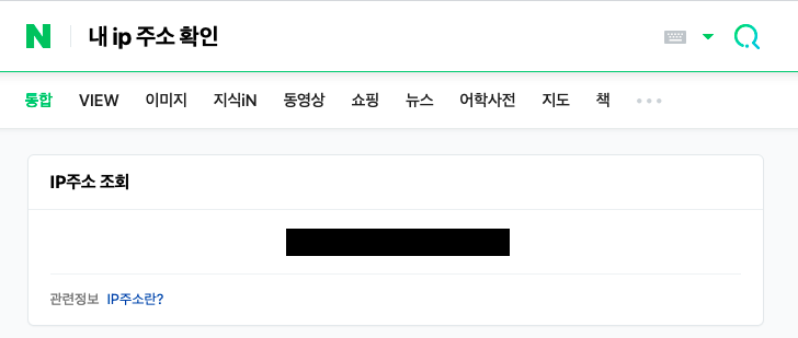 서버에 내 IP를 보내기 위해 나의 외부 IP 주소를 알아내기 위해 네이버에 검색하여 알아낸 후, Get 메소드로 서버에 전달하였다.