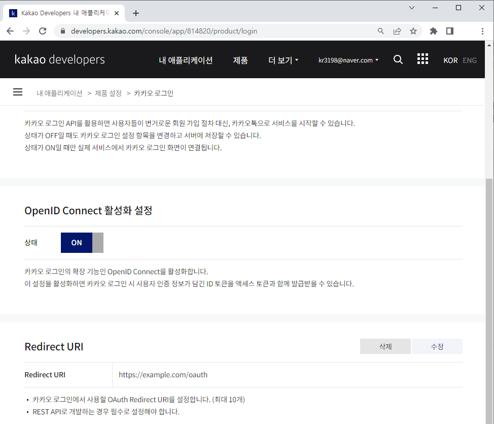 먼저 카카오 개발자 계정에서 API Key와 Redirect URI를 확인하고, 로그인된 상태에서 개발자 도구를 이용하여 로그인 쿠키 값을 확인해야 한다.