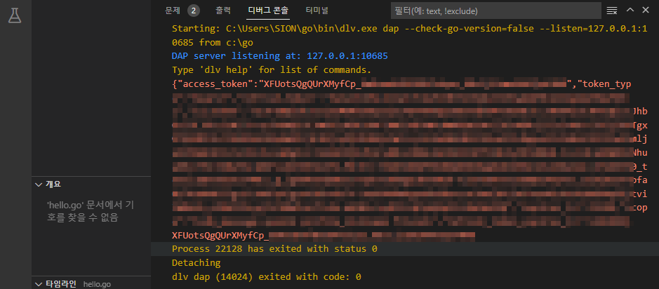 위 kakao_login_token() 함수를 실행하면 POST 요청에 대한 응답에서 액세스 토큰 값을 확인할 수 있다.