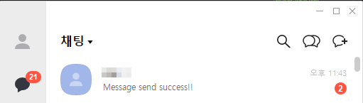 친구의 카카오톡 메신저에서 메세지가 정상 전달된 것을 확인할 수 있다.