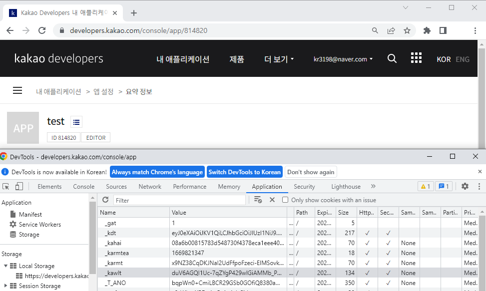 1) 개발자 계정 로그인 쿠키(_kawlt)