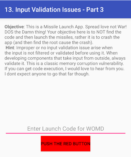 Season 1/워게임 [Android] 13. 입력 유효성 검사 문제 - Part 3 작성자 - LRTK 문제풀이 목표: 이것은 미사일 발사 앱입니다. 전쟁이 아닌 사랑을 퍼뜨려라! DOS 망할 것! 여기서 당신의 목표는 코드를 찾은 다음 미사일을 발사하는 것이 아니라 앱을 충돌시키는 것입니다(그리고 충돌의 근본 원인을 찾는 것입니다). 힌트: 입력을 사용하기 전에 필터링하거나 유효성을 검사하지 않으면 입력 유효성 검사 문제가 부적절하거나 전혀 발생하지 않습니다. 외부에서 입력을 받는 구성 요소를 개발할 때는 항상 유효성을 검사하십시오. 이것은 고전적인 메모리 손상 취약점입니다. 코드 실행을 얻을 수 있다면, 당신의 의견을 듣고 싶습니다. 나는 아무도 그렇게 멀리 갈 것이라고 기대하지 않습니다. 이와 같이 임의의 문자열과 so 파일에서 확인한 문자열을 삽입해보면, 상반된 결과 값이 출력되는 것을 확인할 수 있다. InputValidation3Activity .java jni를 통해 java가 아닌 다른 언어로 제작된 코드를 실행한다. 해당 코드는 다른 언어로 제작된 so 파일의 initiateLaunchSequence 함수 리턴값이 0이 아니면, 인증 성공 문구를 출력하는 코드이다. 문제의 힌트에서 메모리 손상 취약점이라는 언급으로 나는 오버플로우가 발생되도록 입력 칸에 a를 하나씩 증가시키면서 테스트를 하였다. a의 길이가 40이 되었을 때, 오버플로우가 일어나 앱이 종료되는 현상을 볼 수 있었다. 해당 취약점은 jni를 통해 다른 언어로 제작된 코드에서 나타나는 취약점을 이용하여 공격 할 수 있다는 점을 알려주는 문제로 판단된다. 공유하기 게시글 관리 MSS 저작자표시 비영리 (새창열림) 'Season 1 > 워게임' 카테고리의 다른 글 FridaLab Write Up - Challenge 01. challenge_01 클래스의 chall01 변수의 값을 1로 변경해라 (0) 2022.12.15 FridaLab Write Up - Download & Install (0) 2022.12.15 [Android] 12. 하드코딩 이슈 - Part 2 (0) 2022.11.29 [Android] 11. 접근 제어 이슈 - Part 3 (0) 2022.11.29 [Android] 10. 접근 제어 이슈 - Part 2 (0) 2022.11.29 Contents 당신이 좋아할만한 콘텐츠 FridaLab Write Up - Challenge 01. challenge_01 클래스의 chall01 변수의 값을 1로 변경해라 2022.12.15 FridaLab Write Up - Download & Install 2022.12.15 [Android] 12. 하드코딩 이슈 - Part 2 2022.11.29 [Android] 11. 접근 제어 이슈 - Part 3 2022.11.29 댓글 0 + 이전 댓글 더보기