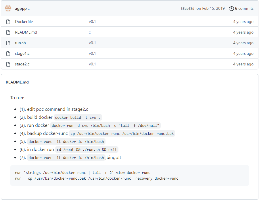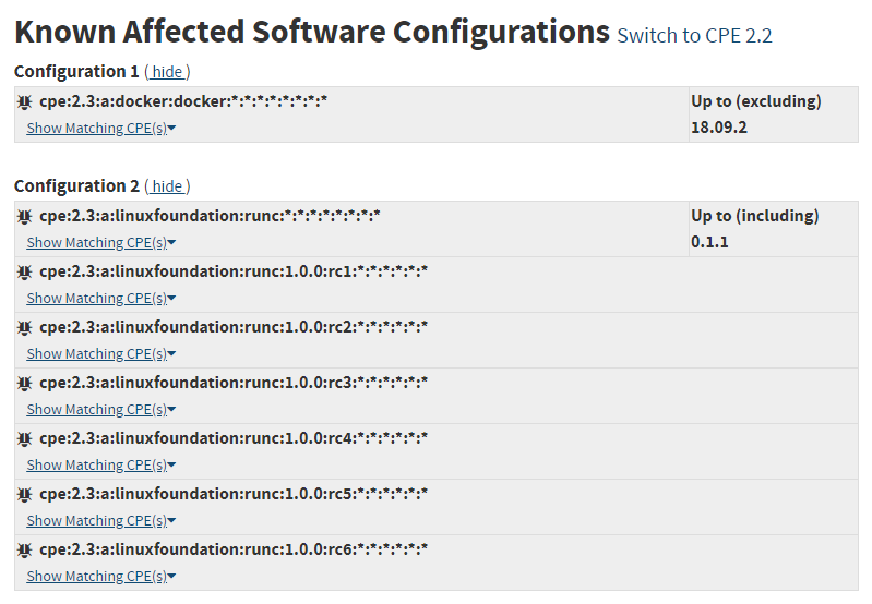 docker 18.09.2 이전 버전의 docker 및 기타 제품에서 사용된 runc 0.1.1 ~ 1.0-rc6 버전에서 동작한다.