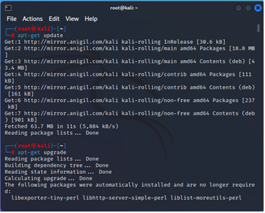 2) 공격전 리눅스의 상태를 점검하기 위해 update를 진행