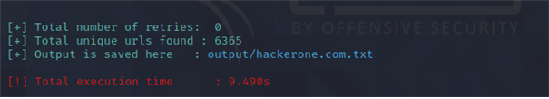 공격을 진행한 결과 총 6365개의 의심의 가는 url을 발견하였고 이는 취약점일 가능성이 존재하는 경로이다. 이는 위양성을 나타낼 가능성이 존재하므로 이를 고려하여 다른 도구를 동시에 사용하여 공격을 수행하여 취약점을 점검해야 한다.