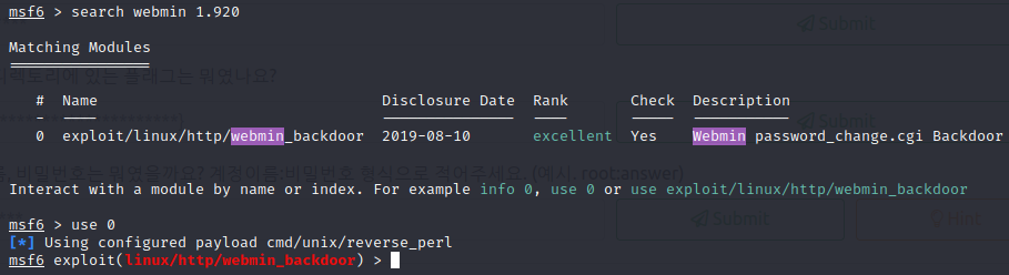 → 해당 공격을 사용하기 위해 metasploit에서 1.920에 맞는 모듈 선택