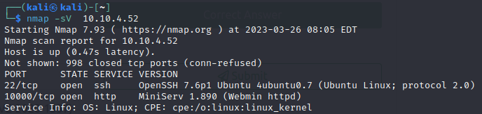 → 배너 그래빙을 사용하기 위해서 -sV를 사용하였습니다.