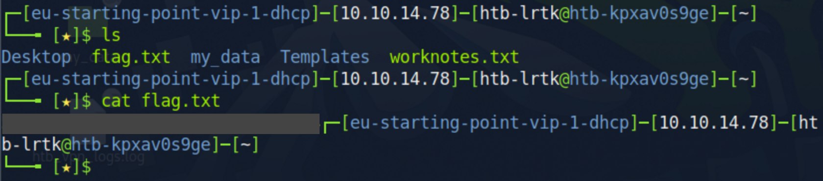 나는 get 명령어를 이용하여 flag.txt 파일을 로컬에 다운로드하였다.