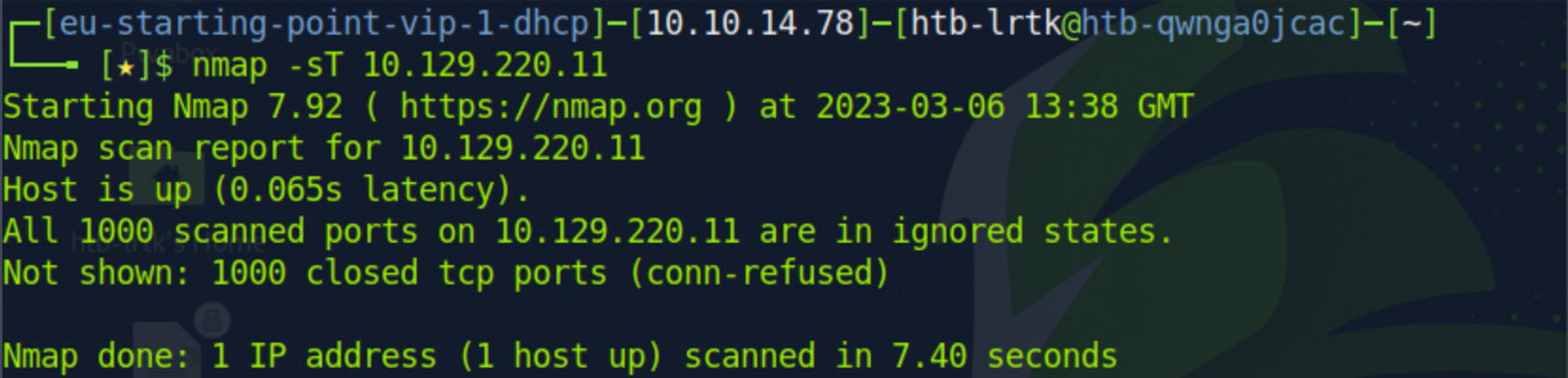 문제를 보고 나는 늘 하던대로 nmap -sT 옵션을 주고 스캔을 시도했다. 하지만 nmap에서 모든 포트를 스캔하지 않고 끝나버렸다.