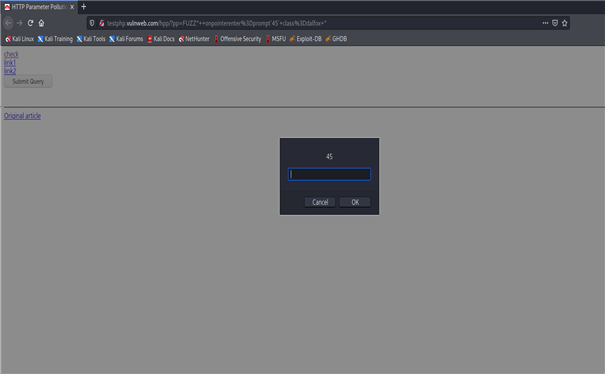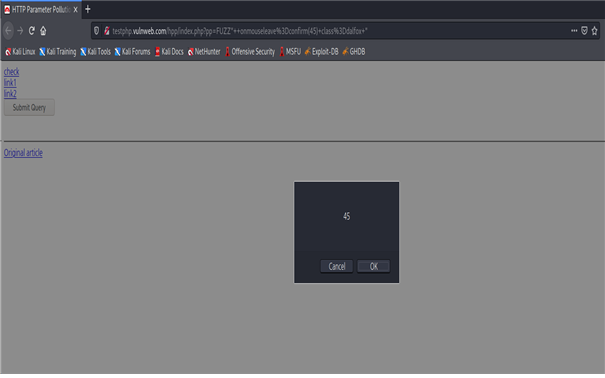 3) Dalfox로 공격을 하여 output.txt 파일에 있는 URL 중에서 XSS 공격을 할 수 있는 URL을 발견하였고 그 URL을 열어보았다.