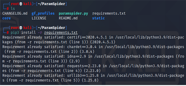 2) ParamSpider로 경로를 이동한 후 requirement,txt에서 명시된 사전에 필요한 라이브러리들을 설치한다.