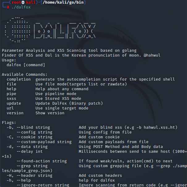 2) Dalfox를 실행시키면 기본적인 사용법이 뜬다.