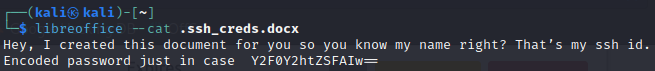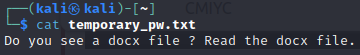 FTP에 접속했을때, docx 파일이 안보였으니, ls -al을 통한 숨긴파일을 확인해주고, get 명령어를 통해 local로 해당 docx 파일을 가져온다.