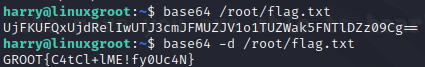base64를 통해 flag.txt 내용을 인코딩하고, 다시 디코딩하면 아래와 같이 플래그 값을 확인할 수 있다.