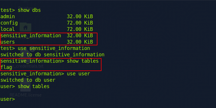 그 중 sensitive_infomation에서 flag이라는 컬렉션이 존재하는 것을 확인하였다.