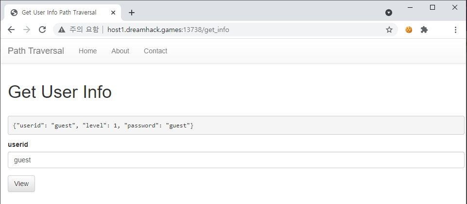 음... userid가 guest인 사용자를 보여주는 것 같다. View 버튼을 눌러보자.