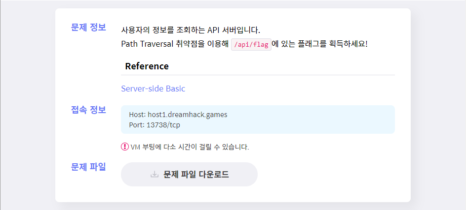 사용자의 정보를 조회하는 API 서버에서 Path Traversal 취약점을 이용해 /api/flag 플래그를 획득하라고 한다.