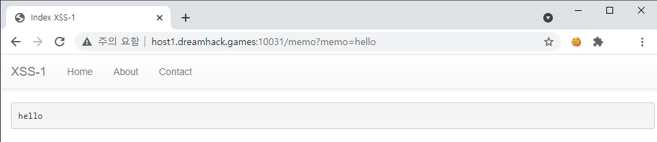 memo 파라미터로 입력된 값을 전송하면 페이지 응답 시, 해당 변수가 페이지 내 삽입된다.
