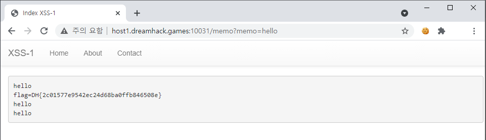 => memo 페이지에 FLAG가 삽입된 로컬의 쿠키 값 인자 값으로하여 작성하는 것으로 이해하면 된다.