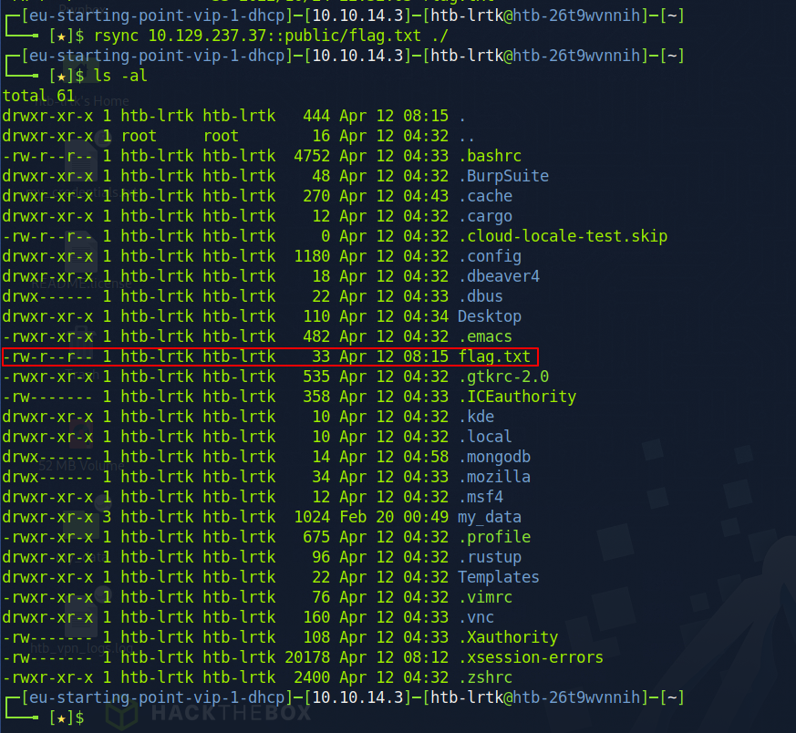 Season 1/워게임 [Starting Point] TIER 0 - Synced 작성자 - LRTK Question What is the default port for rsync? 번역: rsync의 기본 포트는 무엇인가요? 상세 풀이 sync는 원격 파일과 디렉토리를 동기화하는 데 사용되는 빠르고 유연한 파일 전송 도구입니다. 기본적으로 rsync는 TCP 프로토콜을 사용하여 클라이언트와 서버 간에 데이터를 전송하며, 이때 기본 포트로 873을 사용합니다. rsync는 파일을 전송할 때 차이점을 감지하고, 변경된 부분만 전송함으로써 대역폭을 절약할 수 있습니다. 이 과정을 델타 인코딩이라고 합니다. 이러한 특징 덕분에 rsync는 대용량 파일 및 디렉토리를 효율적으로 동기화할 수 있습니다. 정답: 873 How many TCP ports are open on the remote host? 번역: 원격 호스트에서 열린 TCP 포트는 몇 개입니까? 상세 풀이 정답: 1 What is the protocol version used by rsync on the remote machine? 번역: 원격 머신에서 사용되는 rsync 프로토콜 버전은 무엇인가요? 상세 풀이 정답: 31 What is the most common command name on Linux to interact with rsync? 번역: 리눅스에서 rsync와 상호 작용하기 위한 가장 일반적인 명령어 이름은 무엇인가요? 상세 풀이 Linux에서 rsync를 사용하여 파일 및 디렉토리를 동기화하려면 rsync 명령어를 사용합니다. rsync는 원격 파일과 디렉토리의 동기화를 쉽게 할 수 있게 해주는 효율적인 파일 전송 도구입니다. 변경된 부분만 전송하여 대역폭을 절약할 수 있습니다. rsync 명령어의 기본 구문은 다음과 같습니다: rsync [옵션] [소스 경로] [대상 경로] 이처럼 rsync 명령어를 사용하면 Linux에서 파일 및 디렉토리 동기화 작업을 간편하게 수행할 수 있습니다. 정답: rsync What credentials do you have to pass to rsync in order to use anonymous authentication? anonymous:anonymous, anonymous, None, rsync:rsync 번역:익명 인증을 사용하려면 rsync에 전달해야하는 자격 증명은 무엇입니까? anonymous:anonymous, anonymous, None, rsync:rsync 상세 풀이 rsync에서 익명 인증을 사용하려면, None을 사용하면 됩니다. 이 경우 아무런 인증 정보를 전달하지 않습니다 익명 인증을 사용하려면, 서버에서 rsync 데몬을 설정할 때 해당 모듈에 대해 "auth users" 옵션을 설정하지 않거나 주석 처리해야 합니다. 이렇게 하면, 클라이언트는 사용자명과 암호를 입력하지 않고 서버에 접속할 수 있습니다. 정답: None What is the option to only list shares and files on rsync? (No need to include the leading -- characters) 번역: rsync에서 공유 및 파일만 나열하는 옵션은 무엇인가요? (-- 문자를 포함하지 않아도 됩니다) 상세 풀이 정답: list-only Submit root flag 상세 풀이 nmap를 통해 공격 대상이 rsync를 사용하는 것을 확인할 수 있음. rsync로 공유된 디렉터리를 확인해보니, public이라는 폴더가 공유되는 것을 확인할 수 있음. public 디렉터리 내 flag.txt 파일이 존재하여 이를 다운로드하고자 함. 다운로드된 flag.txt 파일을 확인한 결과 flag 값을 획득할 수 있었음. 정답: nmap > rsync > rsync download > cat 공유하기 게시글 관리 MSS 저작자표시 비영리 (새창열림) 'Season 1 > 워게임' 카테고리의 다른 글 [CryptoHack] CRYPTO ON THE WEB(JWT Secrets) (0) 2023.05.03 [CryptoHack] CRYPTO ON THE WEB(JSON WEB TOKENS, JWT Sessions, No Ways JOSE) (0) 2023.05.01 [Starting Point] TIER 0 - Mongod (0) 2023.04.29 일단 따라하는 모의해킹 - CatchMeIfYouCan (0) 2023.04.23 일단 따라하는 모의해킹 - Robots (0) 2023.04.04 Contents 당신이 좋아할만한 콘텐츠 [CryptoHack] CRYPTO ON THE WEB(JWT Secrets) 2023.05.03 [CryptoHack] CRYPTO ON THE WEB(JSON WEB TOKENS, JWT Sessions, No Ways JOSE) 2023.05.01 [Starting Point] TIER 0 - Mongod 2023.04.29 일단 따라하는 모의해킹 - CatchMeIfYouCan 2023.04.23 댓글 0 + 이전 댓글 더보기
