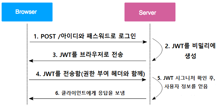 그림 4번 설명을 보면 권한 부여 헤더와 함께 JWT를 전송한다.