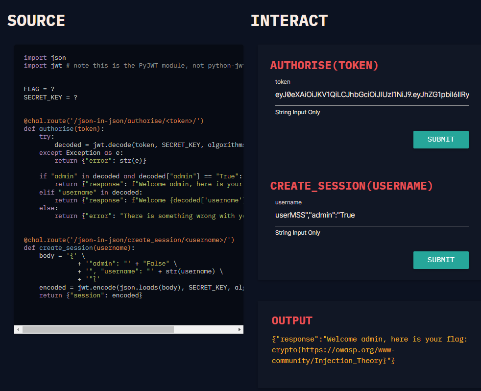 https://web.cryptohack.org/json-in-json/