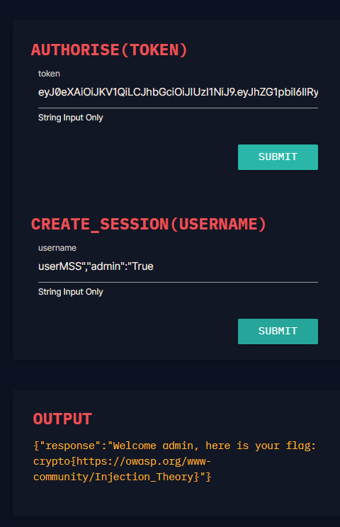 return {"response": f"Welcome admin, here is your flag: {FLAG}"}
