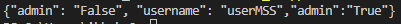 | {"admin": "False", "username": "userMSS","admin":"True"} |