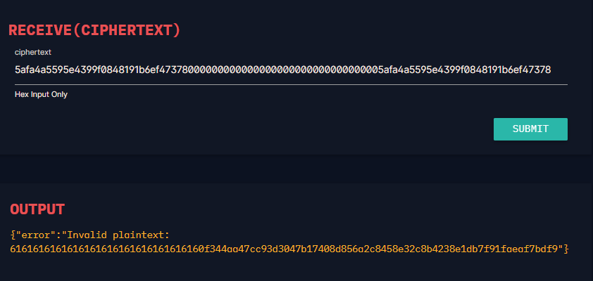 return {"error": "Invalid plaintext: " + decrypted.hex()}