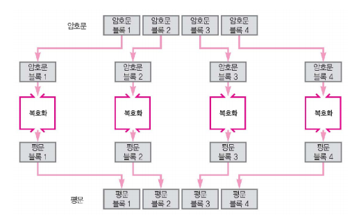 그리고 ECB모드의 복호화 암호화 블록을 복호화한 것이 그대로 평문 블록이 된다.