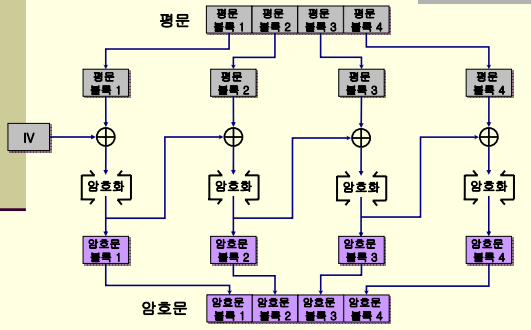 먼저 CBC모드는 각 평문 블록은 이전 블록 암호문와 XOR 연산 후 암호화하는 블록 암호 모드이고,