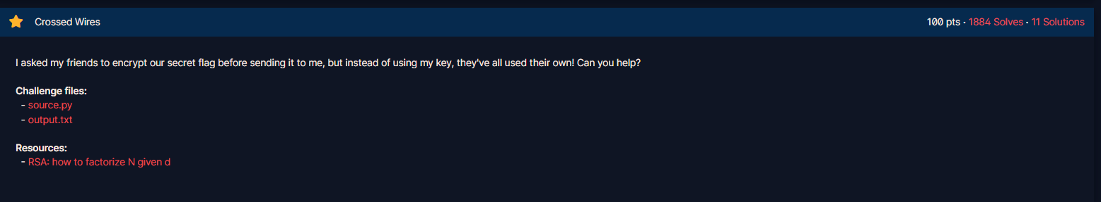 [Cryptohack] RSA (Crossed Wires, Everything is Still Big)