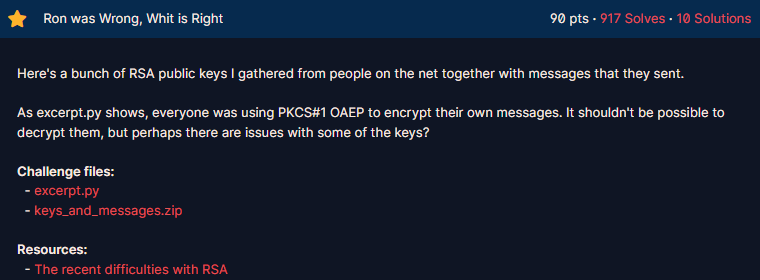 다른 RSA문제 처럼 오일러의 피함수로 개인 인수를 계산하여 메시지를 복호화 할 수 있\다.