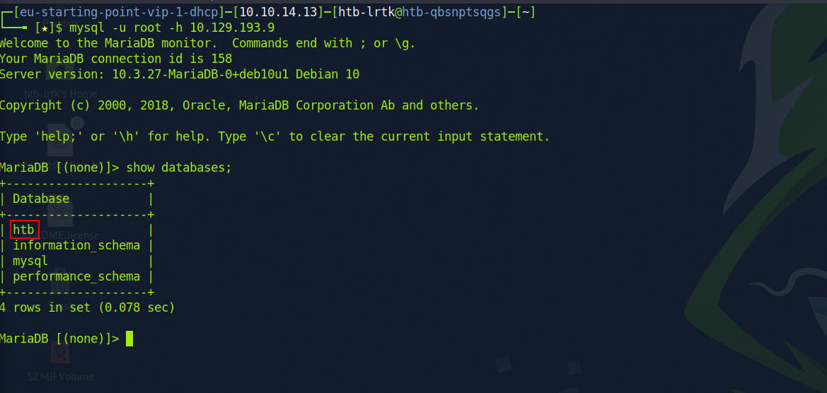 번역: 이 MySQL 인스턴스에는 모든 MySQL 인스턴스에서 공통인 세 개의 데이터베이스가 있습니다. 이 호스트에 고유한 네 번째 데이터베이스의 이름은 무엇인가요?