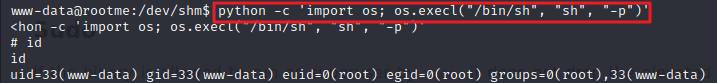 해당 파일을 다운 받고 실행권한을 부여하여 실행해 보면 SUID, SGID가 설정된 파일이 python임을 알 수 있다.