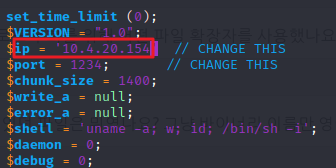 리버스 쉘을 사용하기위해 php파일을 접근하면 위와 같이 IP를 설정할 수 있으니, 공격자(칼리)의 IP로 수정해주고 업로드를 시도해봅니다.