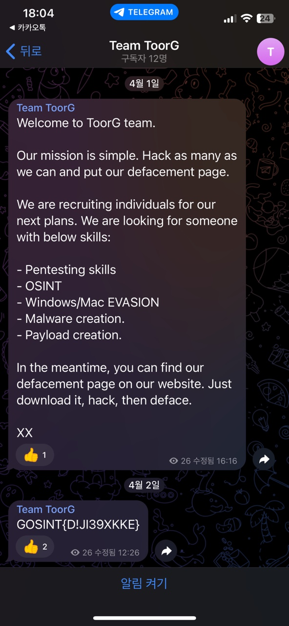 두번째 플래그 또한 텔레그램 채널에 가입하니 해당 플래그를 얻을 수 있었다.