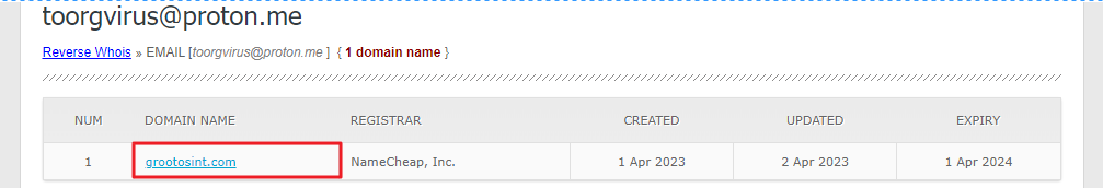 해당 사이트를 통해서 메일 계정을 통해 생성된 도메인에 대한 정보를 확인해 볼 수 있다.