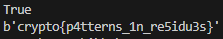 플래그값은 crypto{p4tterns_1n_re5idu3s}이다.