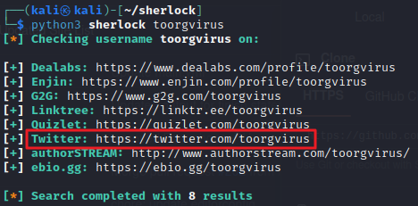 해당 계정을 찾기 위해 'Sherlock(셜록)'이라는 도구를 사용한다.