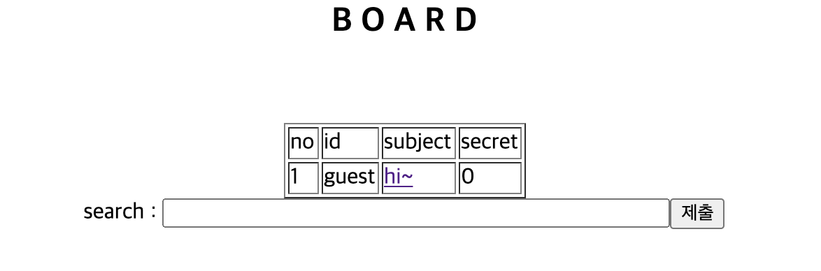 그래서 “게시판 글 안에 있는 Text를 검색하는건가?”라는 생각에 hello~를 검색하니, 글이 출력이 되었다.