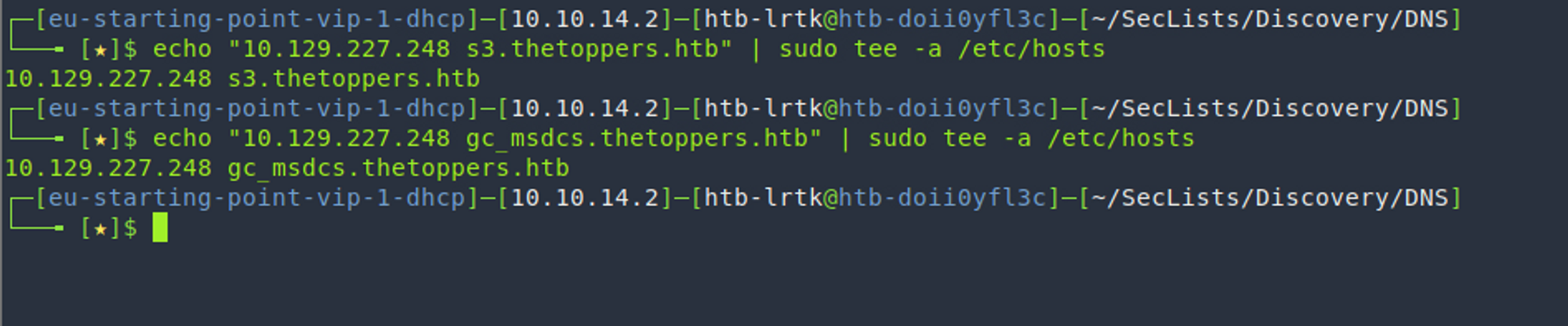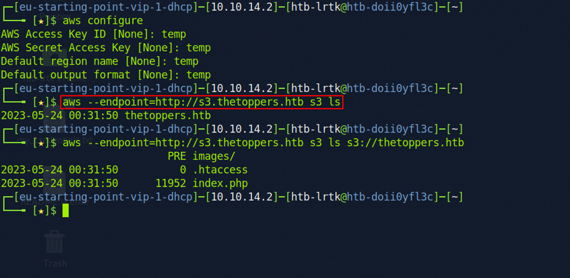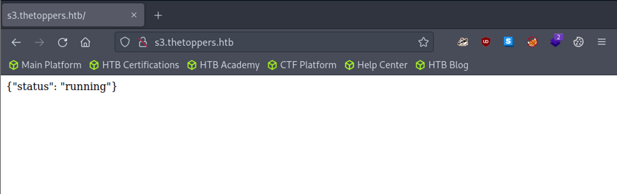 s3.thetoppers.htb에서만 응답이 오는 것을 확인할 수 있었다.